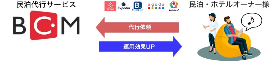 BCMでは世界最大級の民泊サイトのAirbnbを中心に日本で今一番ニーズのあるOTA(Online Travel Agency)5つ対応して集客を行っております。